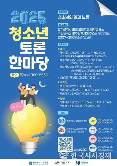 한국시사경제 광주취재본부 | 광주 광산구가 청소년들의 다양한 시각에서 생각하고 소통하는 ‘2025 광산 청소년 토론한마당’을 개최한다.