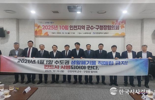 인천시는 10월 13일 남동구에서 열린 인천지역 군수・구청장 협의회에서 군・구 단체장과 함께 2026년 1월 1일부터 수도권 생활폐기물 직매립 금지는 법과 원칙에 따라 반드시 시행되어야 한다는 결의를 재차 다지며, 시민 불편 없이 생활폐기물 직매립 금지에 철저히 대비할 수 있도록 공동 대응방안을 모색했다.