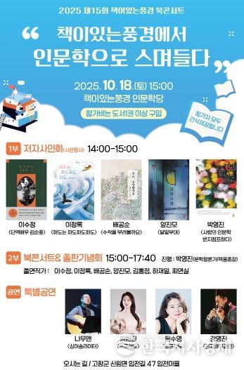 또한, 북콘서트의 열기를 이어 특별공연 무대도 마련된다. 싱어송라이터 ‘나무앤’과 소프라노 임현진이 참여해 가을밤의 정취를 물들이는 음악 공연을 선보인다. 클래식과 대중음악이 어우러진 이번 무대는 문학적 감성과 어울리며 행사의 분위기를 한층 더 풍성하게 할 것으로 기대된다.