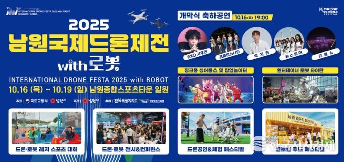한국시사경제 전북취재본부 | 국내 최대 규모의 융복합 드론 축제인 ‘2025 남원국제드론제전 with 로봇’이 오는 10월 16일부터 19일까지 4일간 남원종합스포츠타운 일원에서 성대하게 개최된다.
