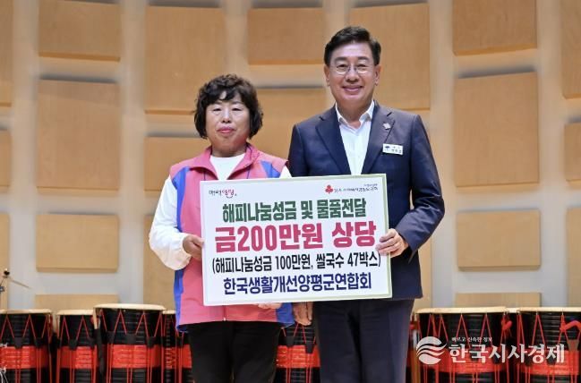 한국시사경제 기동취재팀 | 한국생활개선양평군연합회는 지난 9월 30일부터 10월 1일까지 강릉 한국여성수련원에서 열린 ‘2025년 생활개선양평군연합회 한마음대회’에서 쌀국수 47박스와 현금 100만 원, 총 200만 원 상당의 해피나눔성금을 기탁했다고 밝혔다.