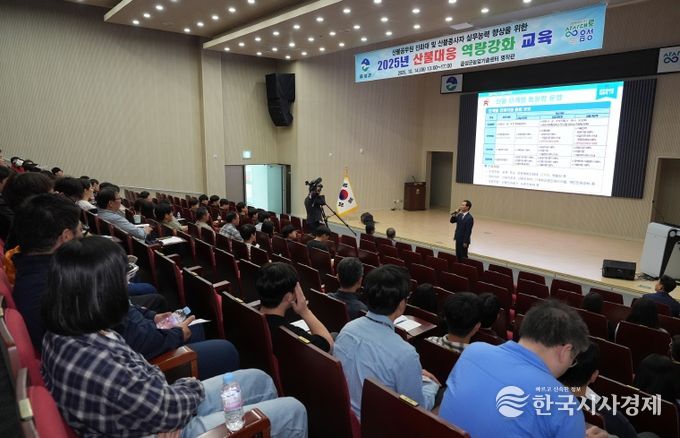 한국시사경제 오영주 기자 | 음성군은 14일 음성명작관에서 군청 소속 직원 150여 명으로 구성된 공무원 진화대를 대상으로 산불 진화 이론교육 및 현장 실습 교육을 실시했다.