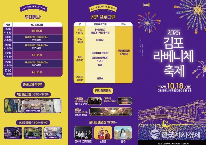 한국시사경제 윤광희 기자 | 대한민국의 베니스 ‘라베니체’를 100% 즐길 수 있는 ‘2025 김포 라베니체 축제’가 오는 18일 한강중앙공원과 라베니체 일원에서 열린다. K-드라마 성지이자 대한민국 대표 야간명소로 이름난 라베니체에서 수상버스킹과 불꽃쇼를 동시에 즐길 수 있는 1년에 단 하루 열리는 축제다.