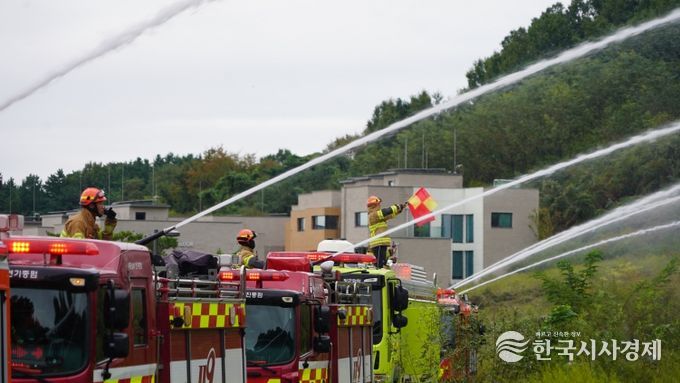 훈련 장비는 펌프차 등 소방차와 레미콘, 살수차 등 24대 차량과 드론과 이동식 수조가 투입됐으며, 세종시 긴급구조통제단 및 통합지원본부를 가동해 재난대응 체계 운영능력을 점검했다.