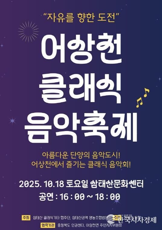 한국시사경제 충북취재본부 | 충북 단양군은 오는 18일, 어상천 삼태산문화센터에서 ‘제3회 어상천 클래식음악축제’가 열린다고 밝혔다.