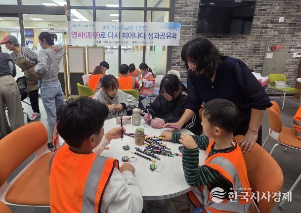 한국시사경제 사회팀 | 장안구 영화동 마을만들기협의회는 지난 14일, 영화동 행정복지센터에서 수원시다함께돌봄센터 4호점 어린이들과 함께하는 업사이클링 체험 행사를 진행했다.