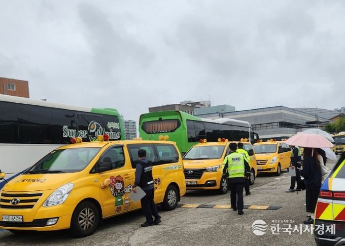 한국시사경제 사회팀 | 평택시는 지난 14일 소사벌레포츠타운 주차장에서 안전한 통학 환경 조성을 위해 하반기 어린이 통학버스 합동 안전 점검을 진행했다.