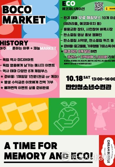 한국시사경제 기동취재팀 | 안양시청소년재단 소속 만안청소년수련관은 오는 10월 18일 청소년과 시민이 함께하는 ‘환경과 역사를 잇다 - BOCO MARKET & E-G 페스티벌’을 개최한다고 15일 밝혔다.