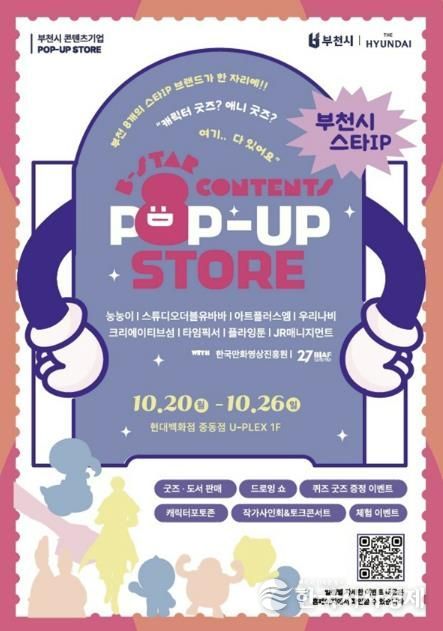 한국시사경제 경기취재본부 | 부천시는 10월 20일부터 26일까지 현대백화점 중동점 U-PLEX 1층에서 지역 우수 콘텐츠 기업 8개 사가 참여하는 팝업스토어 ‘8 CONTENTS, ONE STAGE in BUCHEON’을 운영한다.
