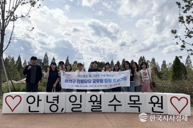 한국시사경제 사회팀 | 수원시 권선구는 지난 14일부터 16일까지, 3일간 일월수목원에서 민원 담당 공무원을 위한 '권선구 민원담당 힐링프로그램'을 운영했다.