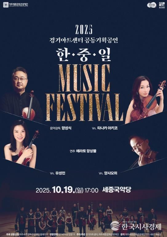 한국시사경제 이정이 기자 | 여주세종문화관광재단이 오는 10월 19일, 경기아트센터와 공동기획으로 ‘한·중·일 뮤직 페스티벌’을 세종국악당에서 선보인다.