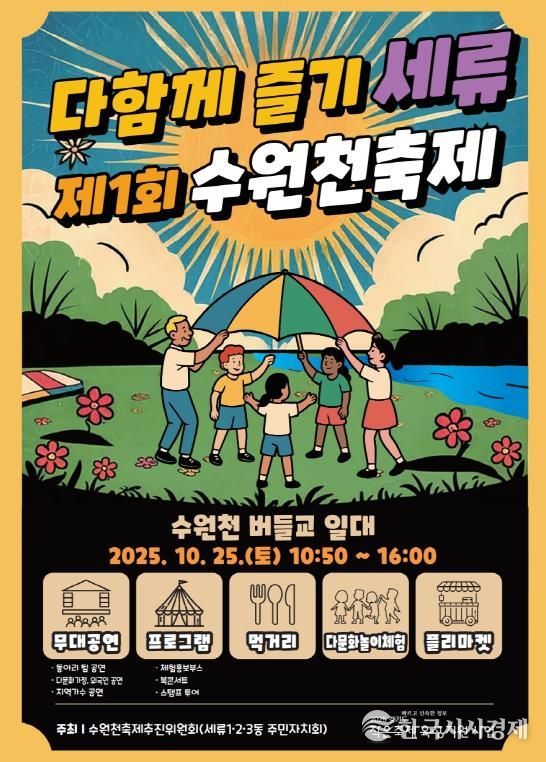 한국시사경제 기동취재팀 | 수원시 권선구 ‘수원천축제추진위원회’가 주최하는 '제1회 수원천 축제 다함께즐기세류'를 오는 25일에 권선구 버들교 일대에서 개최한다고 밝혔다.