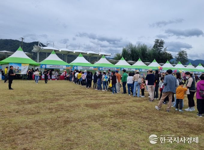 한국시사경제 오영주 기자 | 2025 성주가야산 황금들녘 메뚜기축제 기간 중 성주군의 우수축산물을 한자리에서 만나볼 수 있는“우수축산물 시식‧홍보 행사”를 통해 축제장을 찾은 관광객들의 큰 호응을 얻고 있다.
