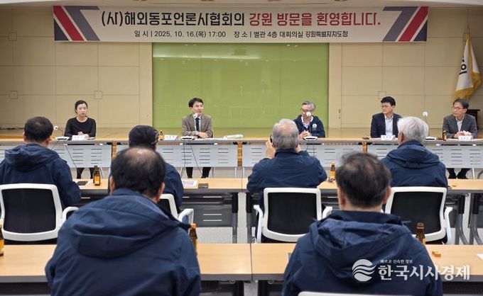 한국시사경제 권충언 기자 | 강원특별자치도는 10월 16일 도청을 방문한 (사)해외동포언론사협회(회장 김훈)와 간담을 갖고, 강원특별자치도의 비전과 주요 정책을 소개하는 한편 재외동포 사회와의 소통을 강화하는 시간을 가졌다.