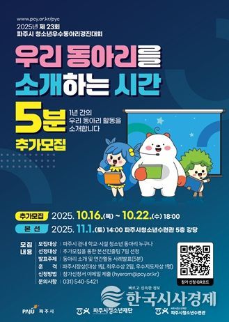 한국시사경제 문화팀 | (재)파주시청소년재단 파주시청소년수련관은 오는 10월 16일부터 10월 22일까지 “제23회 파주시 청소년우수동아리경진대회”의 참가 동아리를 모집한다.