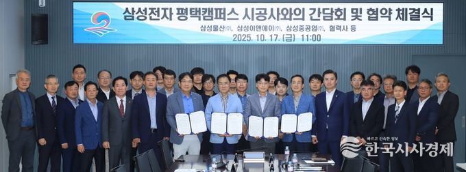 한국시사경제 사회팀 | 평택시는 17일에 관내 시공 예정인 삼성전자 평택캠퍼스 대형시공사와 간담회 및 협약체결식을 개최했다.