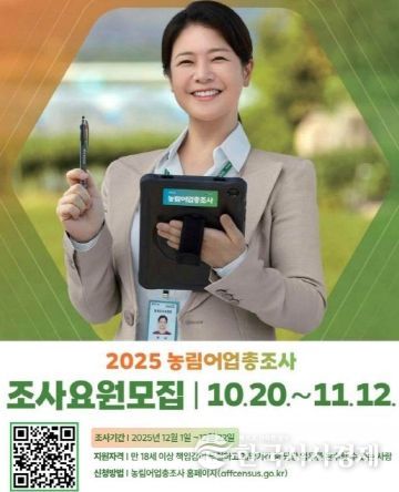 ‘2025 농림어업총조사’는 오는 11월 20일부터 12월 10일까지는 비대면 조사(인터넷), 12월 2일부터 12월 22일까지는 방문을 통한 면접조사 방식으로 실시된다.