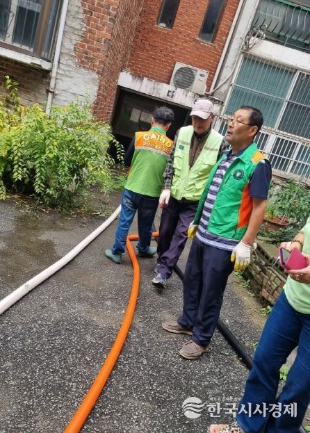 한국시사경제 사회팀 | 평택시 지산동에 있는 빌라 지하실에 지난 14일 침수가 발생했다. 이에 지산동 자율방재단은 즉시 현장으로 출동해 단원 8명과 함께 긴급 배수 작업을 실시하며 주민 피해 최소화에 나섰다.