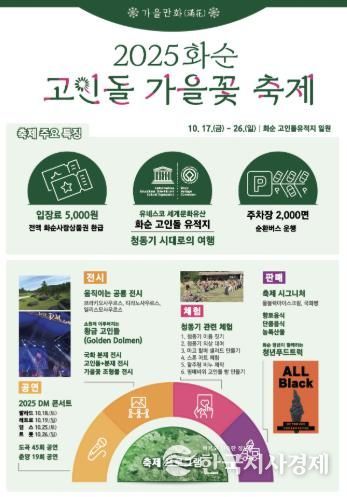 한국시사경제 권충현 기자 | 화순군은 10월 17일부터 10월 26일까지 10일간 개최되는 ‘2025 화순 고인돌 가을꽃 축제’에서 통합문화이용권(문화누리카드)으로 결제가 가능한 임시 가맹점 46개소를 운영한다고 밝혔다.