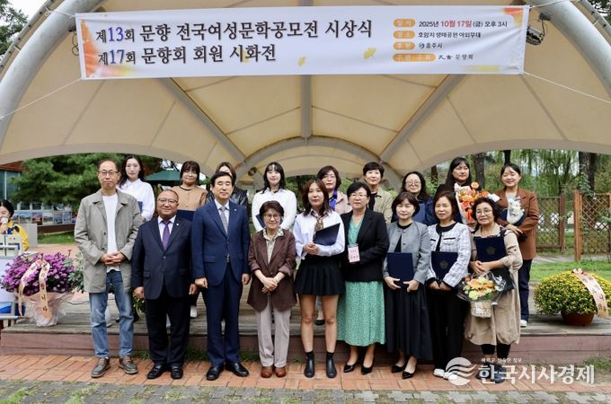 한국시사경제 충북취재본부 | 충주 문향회(회장 안애정)에서 주최하는 ‘제13회 문향전국여성문학공모전 시상식과 제17회 문향회 시화전 개막식’이 17일 호암지 생태공원 야외무대에서 열렸다.