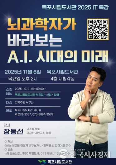 한국시사경제 전남취재본부 | 목포시립도서관은 오는 11월 6일 오후 2시, 급속히 확산되는 인공지능 시대에 발맞춰 지역 주민을 위한 특별 강연을 개최한다.