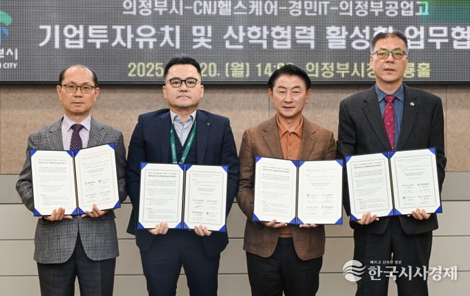 한국시사경제 경기북부취재본부 | 의정부시는 10월 20일 시청 회룡홀에서 ㈜CNJ헬스케어, 경민IT고등학교, 의정부공업고등학교와 함께 ‘기업투자유치 및 산학협력 활성화’를 위한 업무협약을 체결했다.