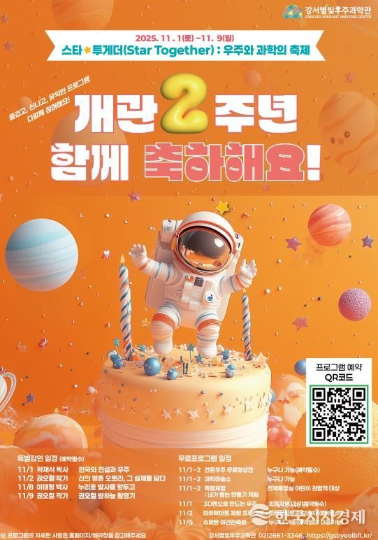 한국시사경제 김숙영 기자 | 서울 강서구가 강서별빛우주과학관(관장 심재현) 개관 2주년을 맞아 ‘스타 투게더(Star Together): 우주와 과학의 축제’를 개최한다.