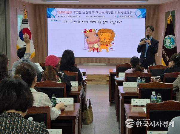 한국시사경제 경북취재본부 | 청송교육지원청은 10월 20일 13시 교육지원청 대회의실에서 관내 유치원 보호자 및 책나눔 학부모 자원봉사자를 대상으로 연수를 실시했다.