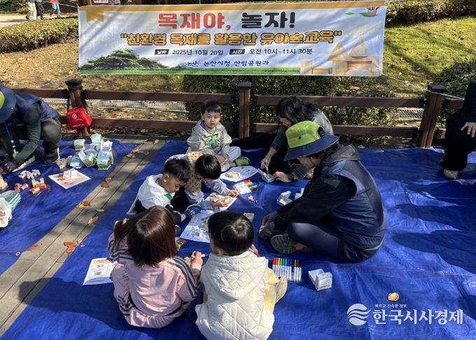 한국시사경제 사회팀 | 논산시는 20일 논산시민가족공원 일원에서 지역 어린이집 아동 20여 명을 대상으로 국산 목재를 활용한 ‘유아숲교육 프로그램’을 운영했다고 밝혔다.