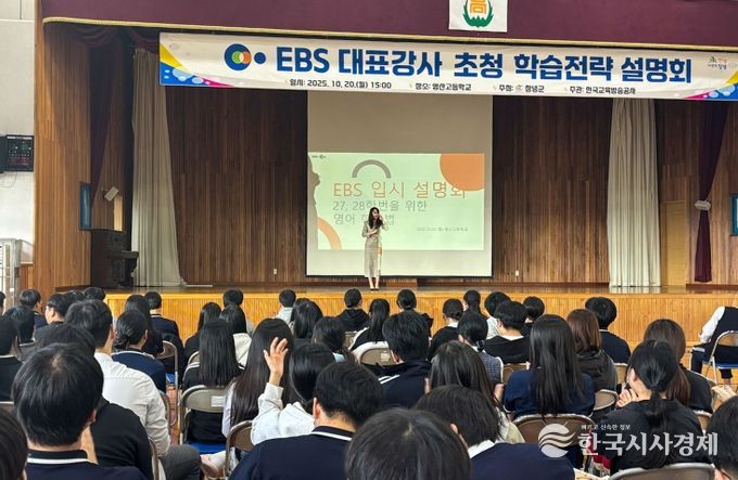 이날 영산고등학교에서는 EBS 영어과목 김지우 대표강사가 초청돼 영어 실력 향상 전략과 학습 동기 부여 방법 등에 대해 강의했다.