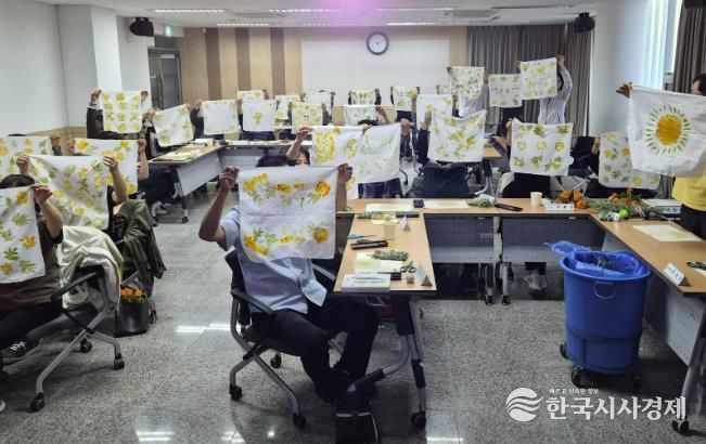 이번 교육은 직장인들의 환경 문제에 대한 이해를 높이고, 일상에서 실천할 수 있는 친환경 활동을 체험해 보는 데 목적을 두고 진행됐다. 천연염색에 대한 강의를 시작으로, 허브 스머지스틱 만들기, 보자기 염색 체험 등 다양한 실습 프로그램이 운영됐다.
