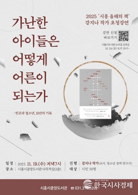 한국시사경제 경기취재본부 | 시흥시 중앙도서관은 ‘2025년 시흥 올해의 책’으로 선정된 '가난한 아이들은 어떻게 어른이 되는가'의 저자 강지나 작가를 초청해 11월 19일 오후 7시 중앙도서관 3층 다목적실에서 시민 강연회를 개최한다.