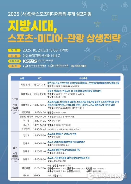 한국시사경제 경북취재본부 | 한국스포츠미디어학회는 10월 24일 오후 1시부터 안동국제컨벤션센터에서 ‘2025 추계 심포지엄’을 개최한다.