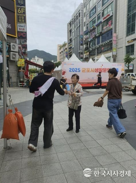 한국시사경제 사회팀 | 군포시는 10월 17일 산본로데오거리에서 열린 ‘2025 군포올래행복축제’ 현장에서 시민들을 대상으로 도로명주소 홍보활동을 진행했다.