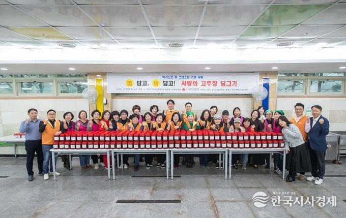 한국시사경제 사회팀 | 인천 서구 여성단체협의회(회장 김재경)는 지난 21일, ㈜남부개발(대표 정수길)로부터 이웃사랑 성금 3백만원을 후원받아 서구 연희노인문화센터에서 ‘사랑의 고추장 담그기’ 행사를 진행했다.