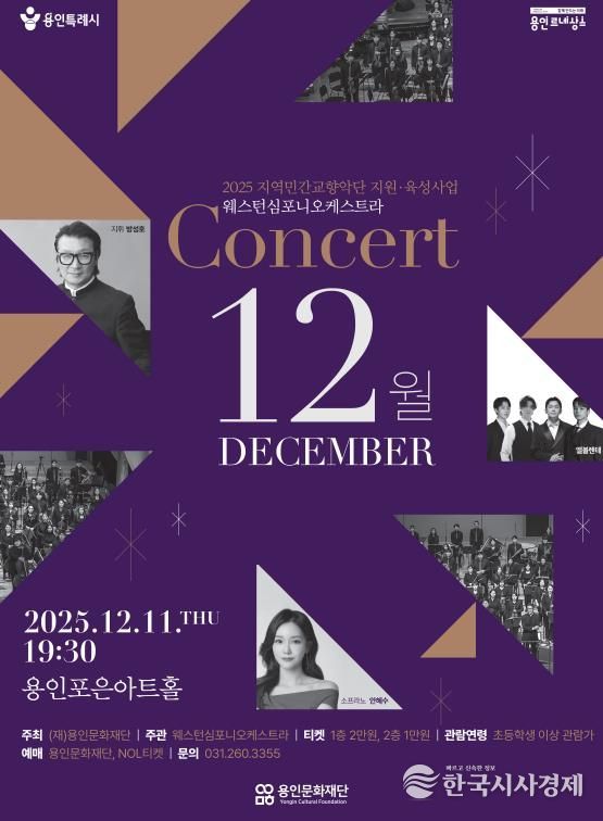한국시사경제 이정이 기자 | 용인문화재단은 오는 12월 11일 오후 7시 30분, 용인포은아트홀에서 웨스턴심포니오케스트라 '콘서트 ‘12월’' 공연을 개최한다.