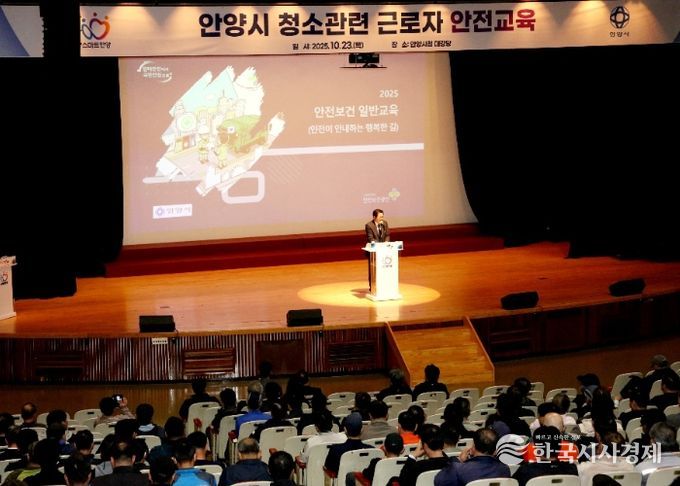 한국시사경제 경기취재본부 | 안양시는 23일 오후 2시 시청 대강당에서 안양시 환경 공무관 및 관내 생활폐기물 수집・운반 대행 용역사의 현장 근로자 400여명을 대상으로 안전교육을 실시했다.