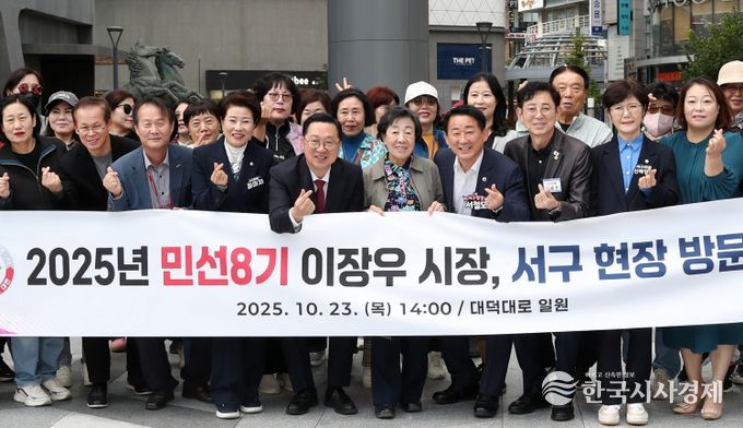 23일 이 시장과 서 청장은‘이장우 대전시장과의 만남’ 행사를 통해 미디어 파사드 사업 대상지인 둔산2동 대덕대로(큰마을네거리~갤러리아~방죽네거리 0.8km 구간)를 방문했다.