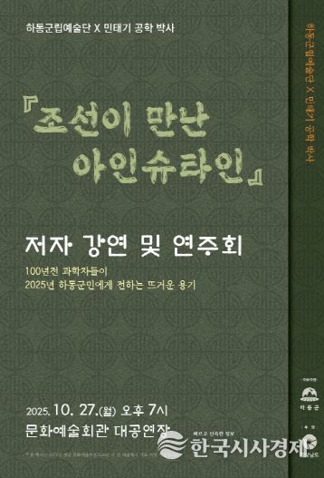 한국시사경제 김숙영 기자 | 하동군립예술단과 '조선이 만난 아인슈타인' 저자 민태기 공학박사가 함께하는 북콘서트 연주회가 10월 27일 월요일 저녁 7시 하동문화예술회관에서 개최된다.