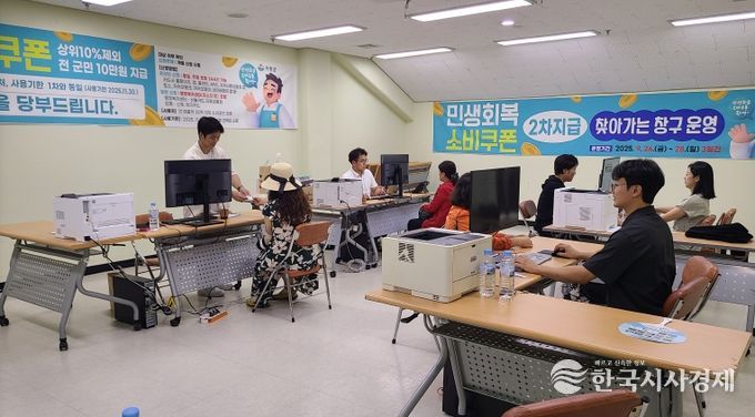 군은 군민 편의를 위해 주소지와 관계없이 가까운 읍면 행정복지센터에서 소비쿠폰을 신청할 수 있도록 하고 있으며, 평일 방문이 어려운 군민은 주말과 야간에도 사전 예약으로 신청할 수 있다. 특히 온라인 신청이 어려운 군민은 해당 행정복지센터에 찾아가는 신청을 요청할 수 있다.