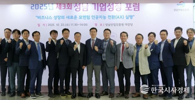 한국시사경제 경기취재본부 | 성남산업진흥원은 지난 10월 22일 진흥원 대강당에서 기업인과 유관기관 임직원 160명이 참석한 가운데 2025년 제3회 ‘성남기업성장포럼’을 개최했다.