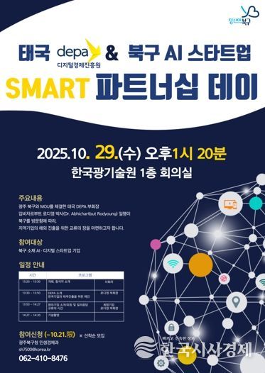 26일 북구에 따르면 오는 29일 한국광기술원에서 태국 디지털경제진흥원과 함께 ‘SMART 파트너십 데이’ 행사를 개최한다.