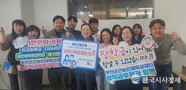 유안숙 사회복지과장은 “장학금 후원은 단순한 기부가 아니라 부안의 미래를 함께 키워가는 범군민 참여운동이다. 나눔의 따뜻한 마음이 교육의 희망으로 이어질 수 있도록 많은 군민들의 동참을 바란다.”고 전했다.