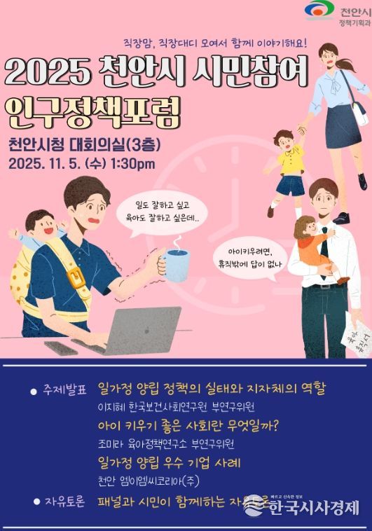 한국시사경제 충남취재본부 | 천안시는 다음 달 5일 시청 대회의실에서 ‘2025 천안시 시민참여 인구정책포럼’을 개최한다.