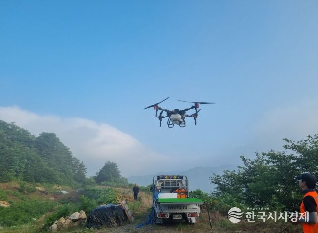 한국시사경제 경남취재본부 | 하동군이 추진 중인 ‘밤나무 드론 방제사업’이 밤나무 농가들의 생산 물량을 대폭 증대하며 그 효과를 입증했다.