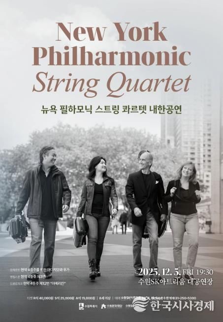 한국시사경제 기동취재팀 | 수원문화재단은 오는 12월 5일 금요일 오후 7시 30분, 수원SK아트리움 대공연장에서 ‘뉴욕 필하모닉 스트링 콰르텟 내한공연’을 개최한다.
