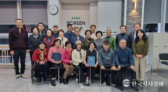 한국시사경제 문화팀 | 울주군시설관리공단 중부장애인복지관이 10월 30일 복지관 내 스크린파크골프장에서 장애인을 위한 3기 스크린파크골프강습“건강 나이스:샷”수료식을 진행했다.