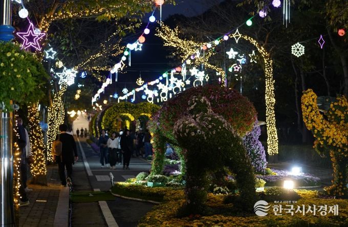 공룡, 꽃 터널, 캐릭터 등 각양각색의 조형물을 활용한 4개의 테마존, 분재국화 전시장 등이 3만여점 다양한 국화로 물들고, 야간에는 LED 경관 조명으로 더욱 아름다워진다.