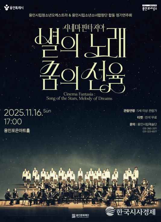 한국시사경제 이정이 기자 | (재)용인문화재단은 오는 11월 16일 용인포은아트홀에서 용인시립청소년오케스트라와 용인시립소년소녀합창단 합동 정기연주회 '시네마 판타지아 : 별의 노래, 꿈의 선율'을 개최한다.
