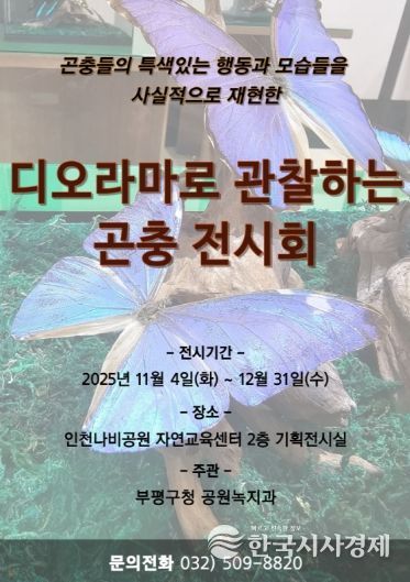 한국시사경제 문화팀 | 부평구는 오는 4일부터 내년 1월 5일까지 인천나비공원에서 ‘디오라마로 관찰하는 곤충 전시회’를 개최한다고 밝혔다.